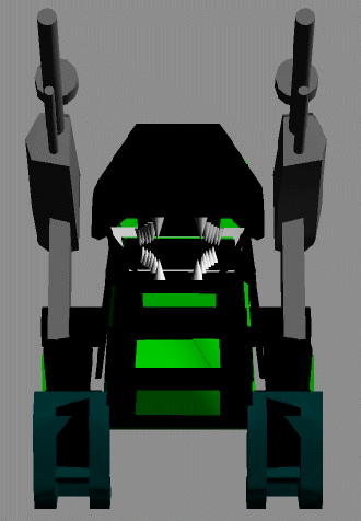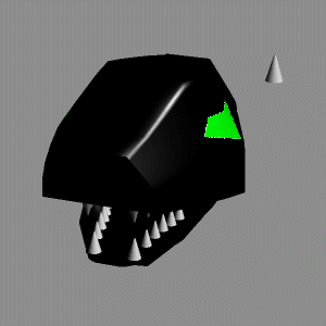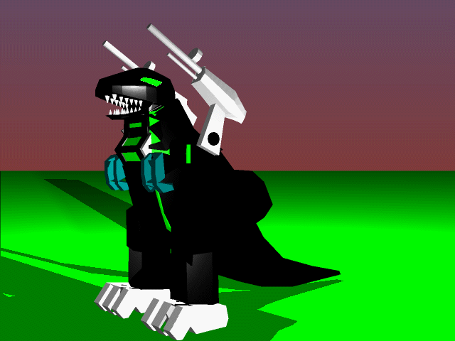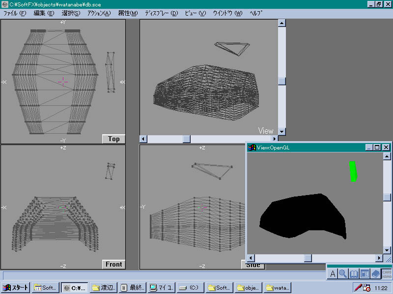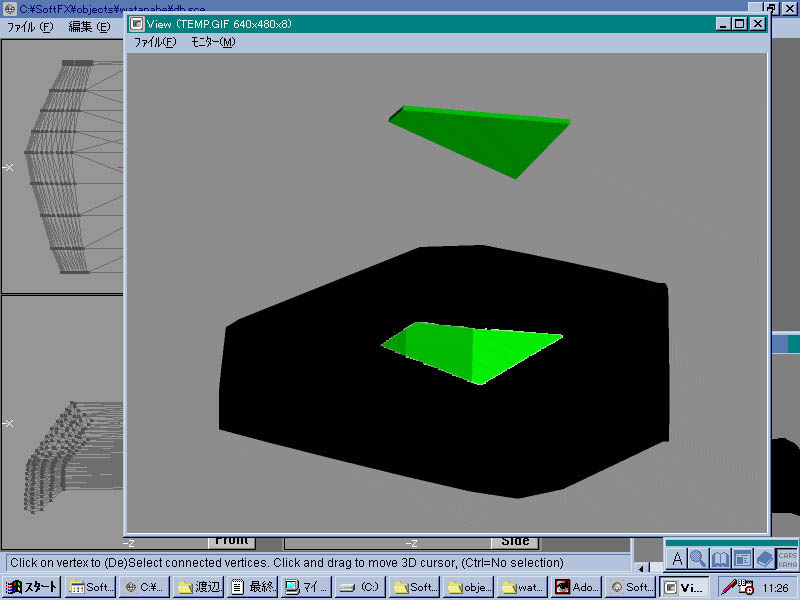 | とりあえず作業風景、何を作っているかわかりますか?今の時点ではあまり原型を止めていないしテクスチャーなどがずれている段階だからよくわからないかもしれませんが、一応とあるゾイドの顔の部分です。まあ色からして・・・・ | |