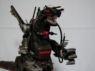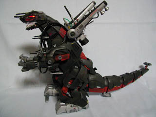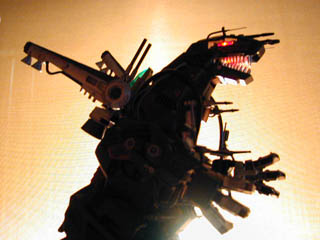 ゼネバス帝国軍最大最強のメカ。頭部には巨大な荷電粒子砲が装備され、その威力は、小型・中型ゾイドだけでなく、ウルトラザウルスをも破壊するほどである。また、巨体に似合わず機動性にも優れている。デスザウラー1台だけでゴジュラス部隊を全滅させたこともある。(ゾイドバトルストーリー2より抜粋)この試作1号機は「トップハンター」と呼ばれた帝国1のエースパイロット「トビー・ダンカン」少尉専用の機体で背部にアイアンコングMK−2と同様のブースターバックを装備し機動力をさらに強化している。なお、このタイプの改造デスザウラーはこの機体1機のみである。4枚目の写真は特殊部隊「スケルトン」の隊員が壊滅したゴジュラス駐屯地から脱出した際に撮ったものとされるが定かではない。 |